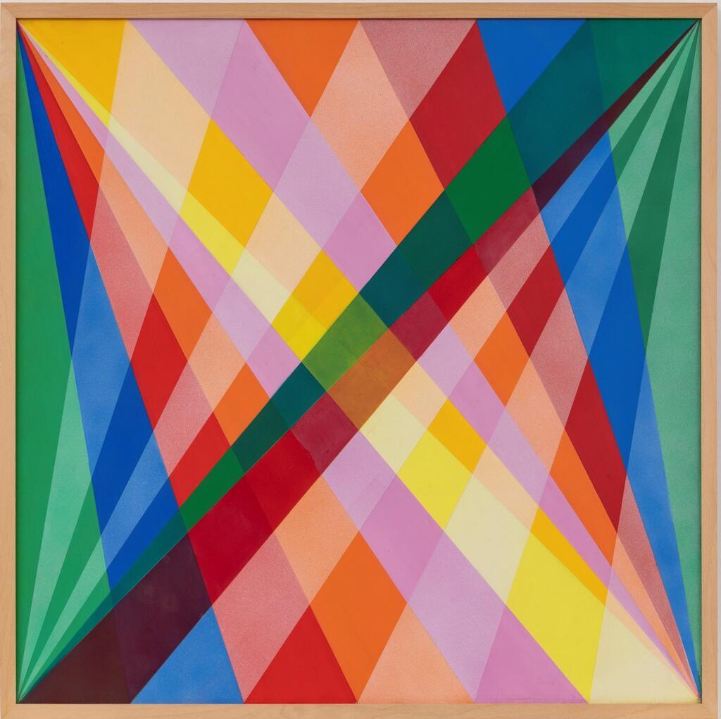 This is the cover image for the exhibition, a colourful collection of converging geometric patterns. It derives from a logo that the artist Anton Stankowski made for a company, Standard Elektrik Lorenz. This is displayed in a room with many other examples of abstract, geometric art - known as ‘Concrete art’. Elsewhere in the exhibition, a label shares the words of American conceptual artist Joseph Kosuth: ‘Art is not what we see, but the meaning we give it’.